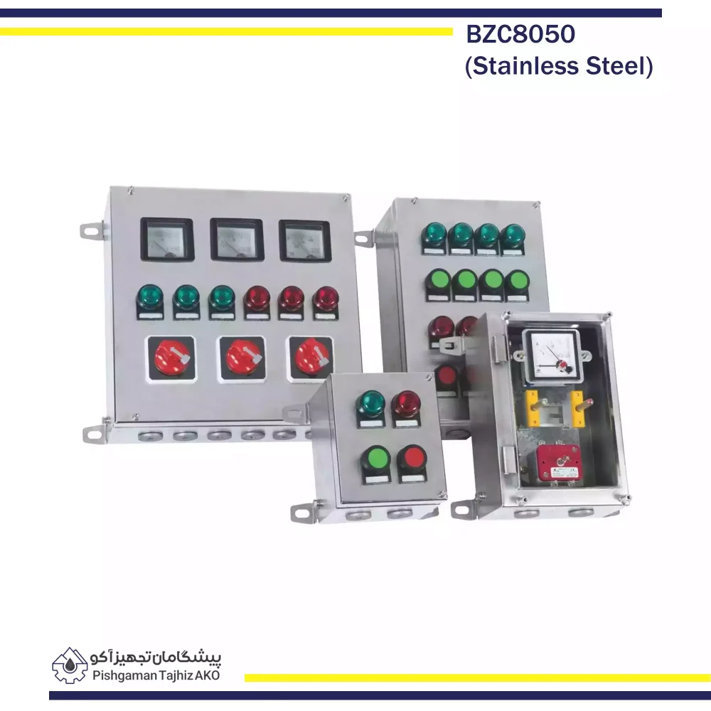 جعبه کنترل ضد انفجار سری BZC8050 با بدنه استیل و حفاظت Ex d e IIC، دارای گواهینامه های بین المللی ATEX و IECEx، قابلیت استفاده در زون های 1 و 2 را داراست.